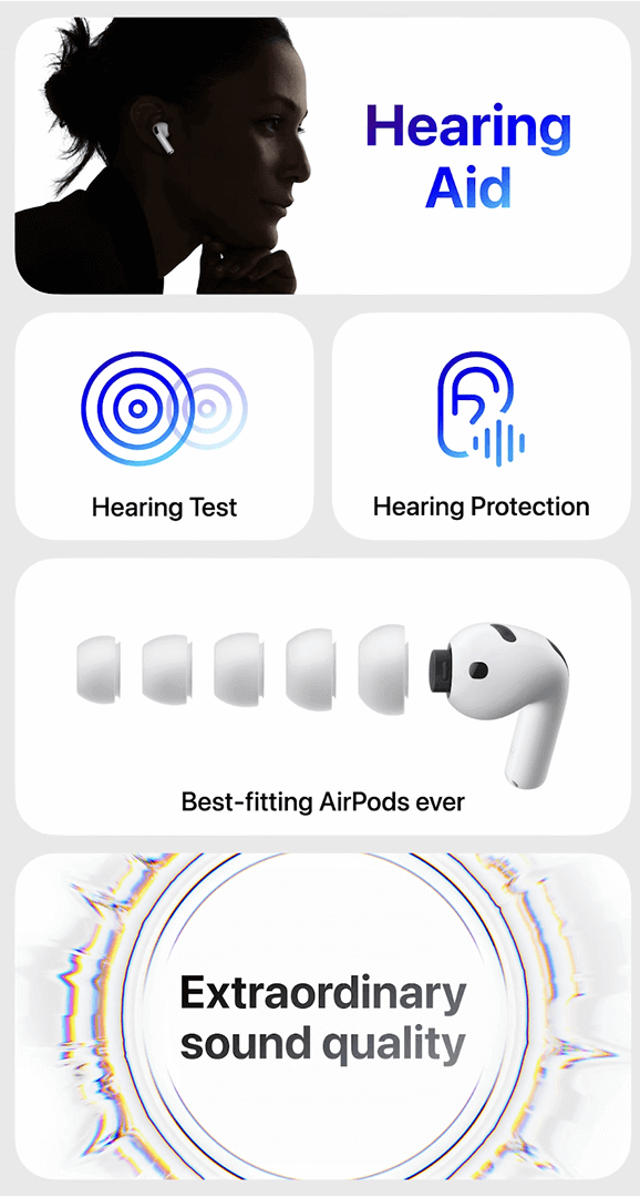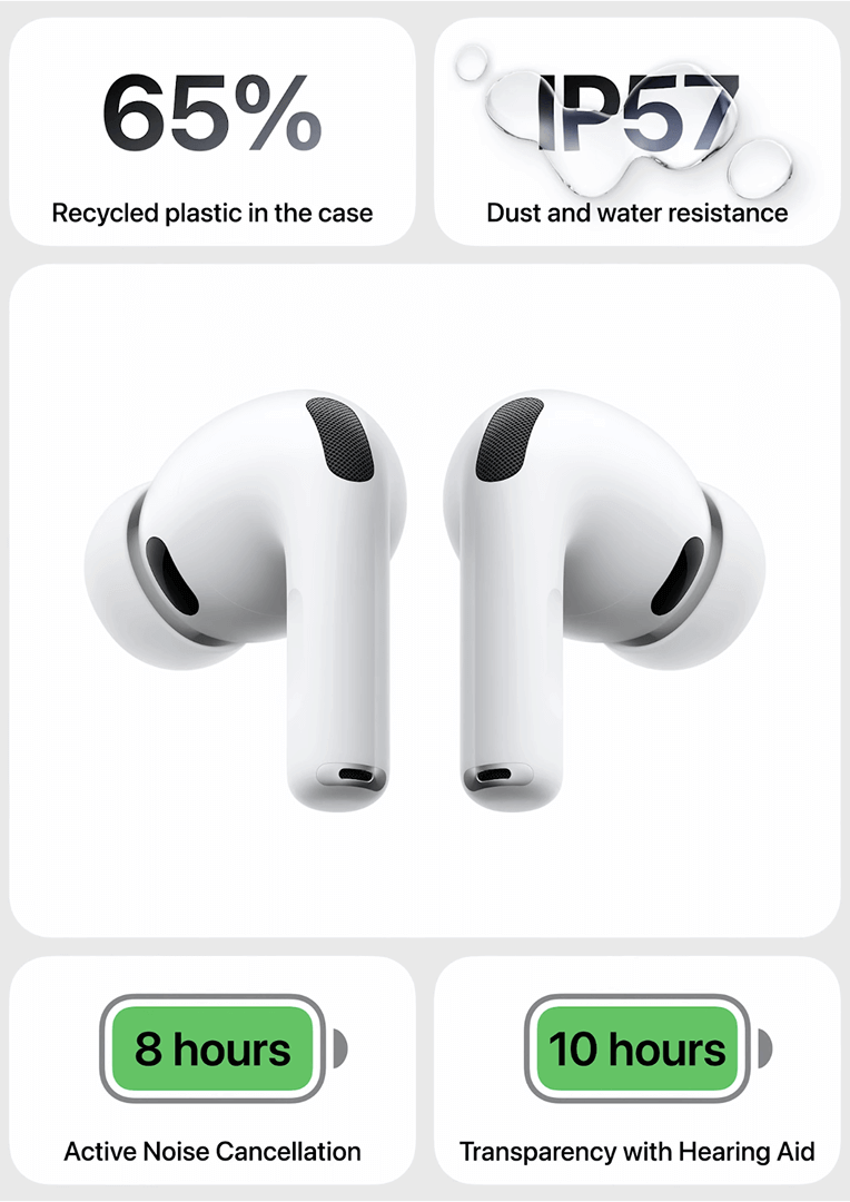 Stay fully immersed in sound with the AirPods Pro 3, available at iConcept. Featuring advanced noise cancellation, a new acoustic design for deeper bass and clearer vocals, and a customizable fit with five ear tip sizes, these earbuds are perfect for workouts, calls, and entertainment. Enjoy up to 8 hours of listening on a single charge with seamless device connectivity.